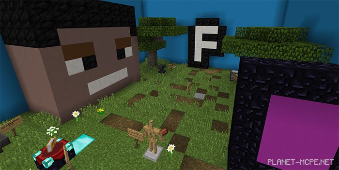 Map Find The Button: YouTubers Edition” features 10 engaging levels, each inspired by a well-known Minecraft Bedrock YouTuber. For instance, throughout the levels, you will encounter logos, signs, or symbols associated with various content creators. The objective is straightforward: locate the button hidden within each level in Minecraft, advance to the next stages, and complete the map. If you find any part too challenging, feel free to use the hint book.