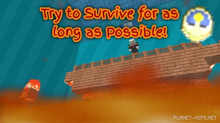 The map «Fire! (Огонь!)» is an exhilarating mini-game designed primarily for multiplayer gameplay in Minecraft PE. The premise is quite straightforward. Players spawn on a chosen map and must survive for as long as possible. Fire will consume most blocks, leaving little room to hide eventually. All levels can be reset within the game, ensuring endless fun!