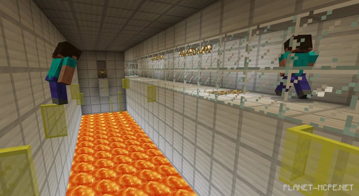 Players will encounter several stations equipped with different traps. Runners must tread carefully when choosing their next move, as Deaths will activate various dangerous traps in MCPE.