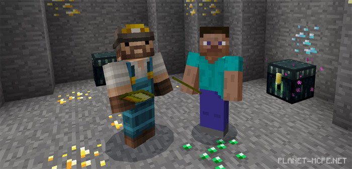 Do you consider yourself a true miner in the world of Minecraft PE, unmatched by anyone? If so, we are excited to introduce you to the map ” Gold Rush ” for Minecraft Pocket Edition, where 1 vs 1 competitions await you in the mines! Your mission is to gather as much ore as possible within 5 minutes, then smelt it and store it in chests. In this realm of MCPE, you’ll discover plenty of diamonds and emeralds, but remember, you’re not the only one hunting for these treasures. This mini-game for MCPE is simply called “Gold Rush“, and I believe you will absolutely enjoy it!