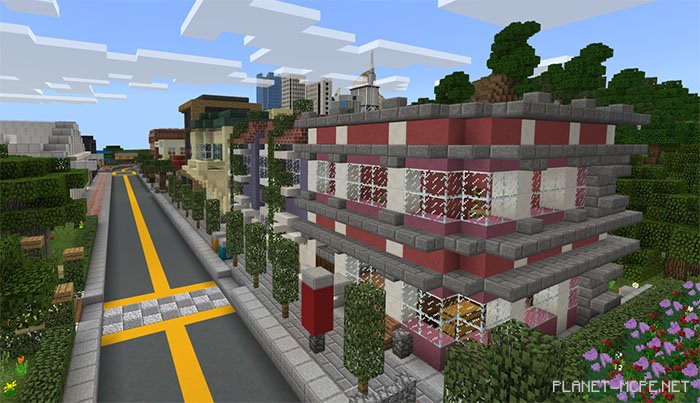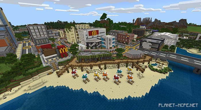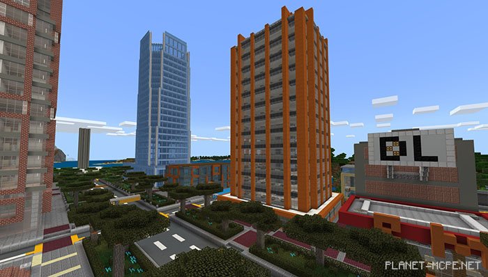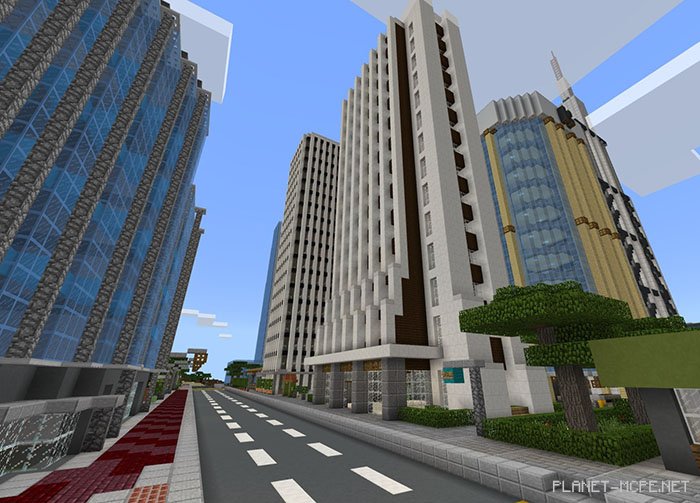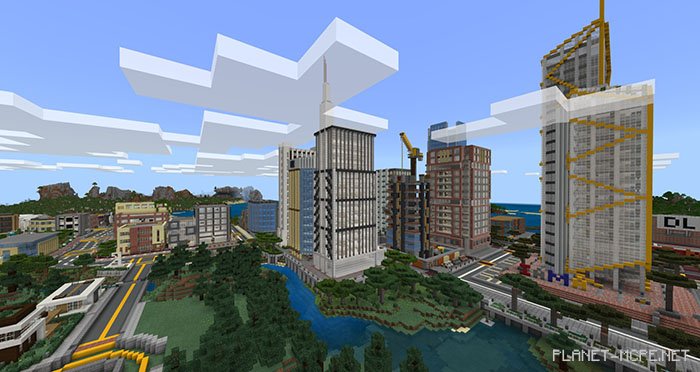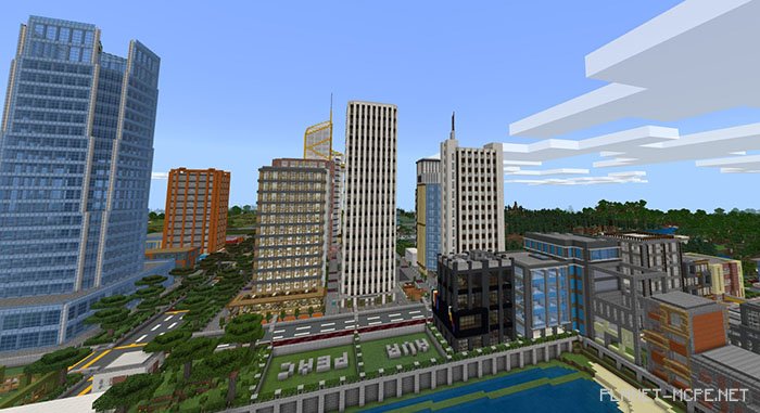 The project on the mapHighBlock State” is a fully developed state featuring three cities that are currently under construction, along with its own capital – Amundsen. There are several districts in Minecraft PE, each showcasing a distinct style, as well as additional areas like the financial district. You will discover a vast array of locations to explore here. Overall, this is truly a remarkable map, which took an entire year to create.
