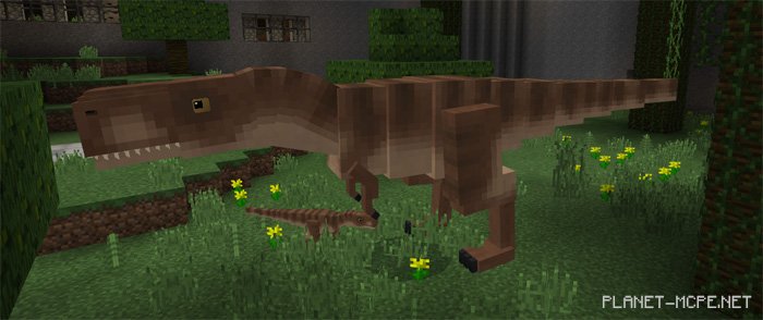 You certainly won’t be bored here… For instance, T-Rex and Spinosaurus are among the largest dinosaurs and can also be quite dangerous. Luckily, they can be tamed, but let’s leave that task to the park’s security in MCPE.