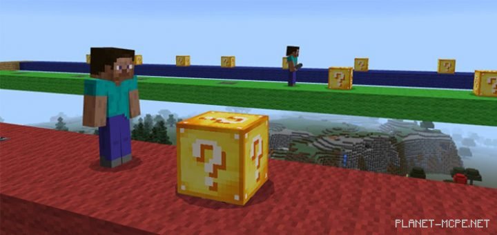 Looking to have some fun with your friends in the world of Minecraft PE? We present to you the map Lucky Block Race” for Minecraft Pocket Edition, where a delightful mini-game awaits 2-3 players! The objective is quite straightforward: you need to break all the “lucky” blocks that you encounter during this mini-game. Each time you destroy a block, something random happens. You’ll never feel completely safe, as hostile mobs from the MCPE universe might appear, or even worse… and that’s what makes the game thrilling!