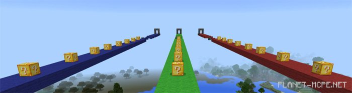 A maximum of 3 players can participate on this MCPE map. Start a countdown from 10 and begin the game! You are strictly prohibited from running past any “lucky” blocks without breaking them.