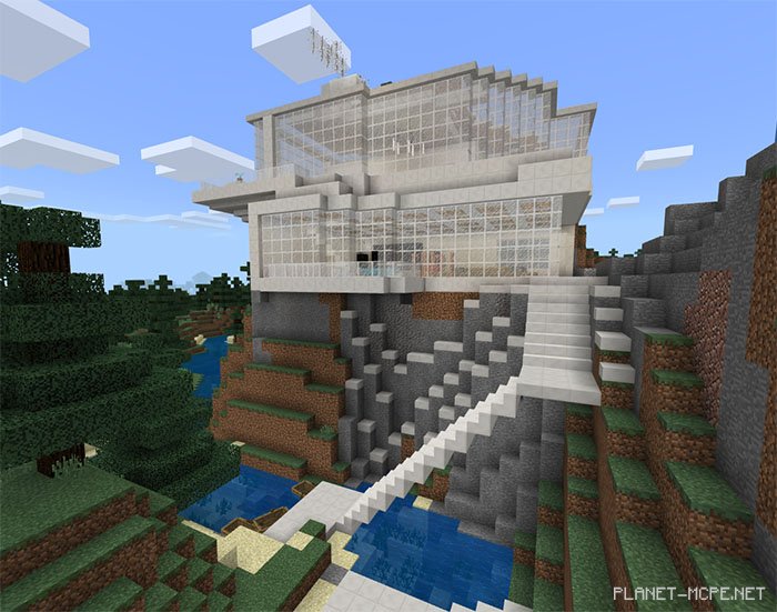 Map “Mountain Modern House” features a stunning mansion nestled in the mountains, perfect for players of Minecraft PE who desire a more appealing residence than a dirt house. The mansion is equipped with all essential amenities: a living room, kitchen, bedroom, bathroom, and game room. Everything you need to meet your basic requirements in MCPE. What are you waiting for? Move into this mansion now!