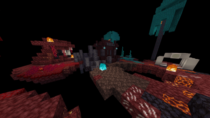For the second arena, the creator opted not to reinvent the wheel in Minecraft BE – it’s a spherical Nether world set in a vacuum.
