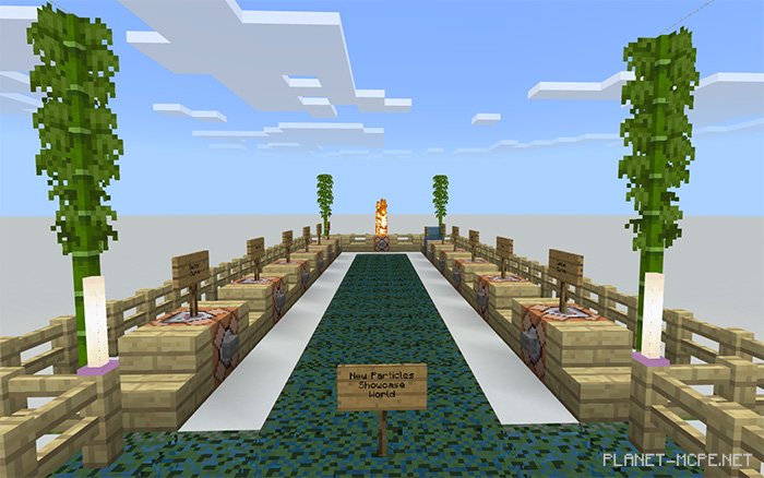 Map “New Particles Showcase World” showcases the latest particle effects that can be executed using the /particle command, which was reintroduced in the beta version of Minecraft Bedrock 1.8. These particles do not affect players (unless programmed to do so), but they provide a fantastic and engaging way to make your creations in Minecraft appear more vibrant and realistic!