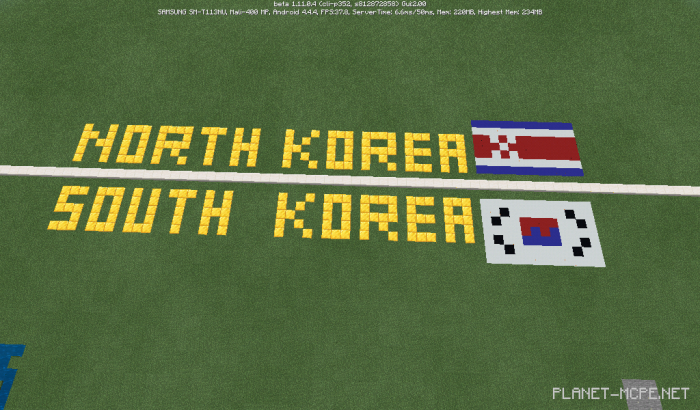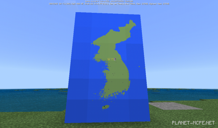 The map «Korea Map (Карта Кореи)» is a detailed recreation of both North and South Korea in Minecraft. It features the entire country without any cities, presenting a miniature version of Korea. This map was designed for various activities, such as mini-games.