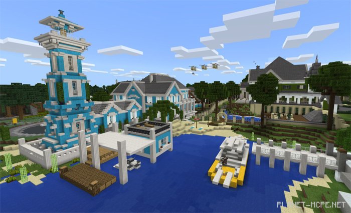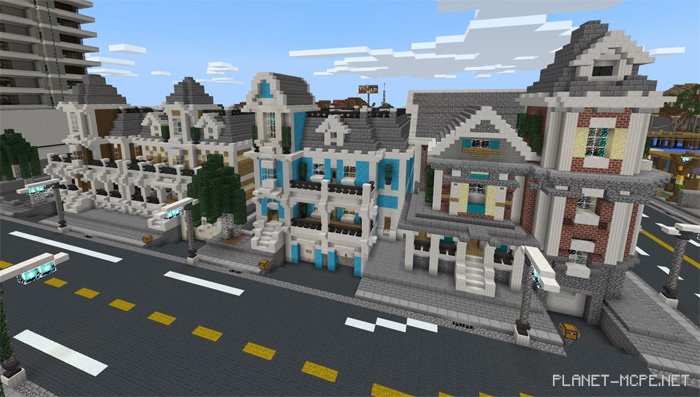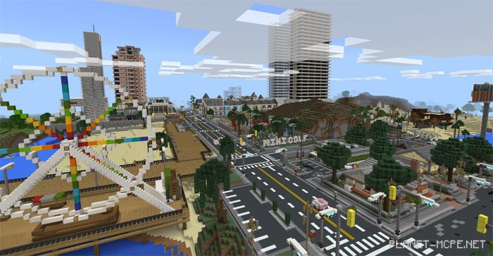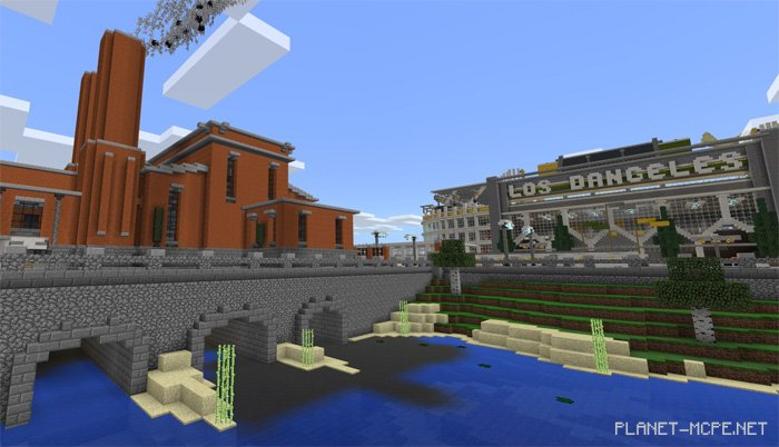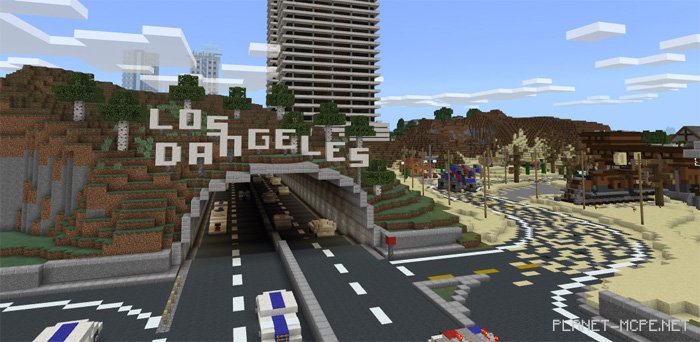Los Dangeles is an incredible city within the world of Minecraft PE, crafted by a well-known YouTuber on the map titled Los Dangeles (Лос-Данжелес). This is one of those rare instances where thoroughly exploring the city in MCPE can take just a few days due to its vast array of intricate details. Each building stands as a masterpiece, which explains why the development of this map for Minecraft Pocket Edition spanned nearly four years. Initially designed for Xbox, the map was later transferred to the Bedrock Engine.