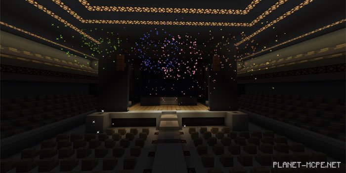 SquArena Concert Hall is a map where players can take the stage or manage lighting, similar to attending any concert tour. Follow the guidelines on the map to understand how everything functions. This is an excellent map for role-playing in Minecraft PE, as it allows some players to handle the lighting system, others to perform on stage, and some to sit in the audience.