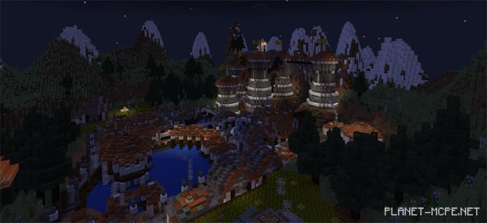On the map titled “Old Village” for Minecraft Pocket Edition, there exists a vast island floating amidst the clouds. Surrounding the island, you will find nothing but air, with no landscape or other features nearby. It seems this area isn’t designed for any specific purpose, yet it could serve as a setting for PvP battles or simply as a survival island in the world of Minecraft PE, reminiscent of a sky island. The island boasts an ancient village and some stunning mountains.