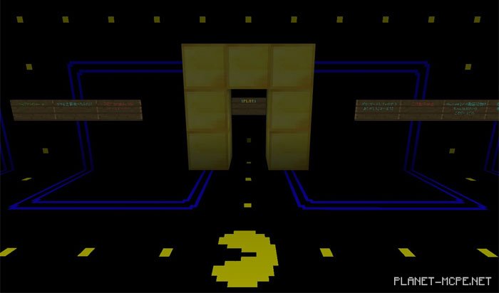 The map «Pac-Man (Пак-Ман)» is a recreation of the classic game Pac-Man within Minecraft PE, which is regarded as one of the greatest arcade games in history. Released in 1980 by a Japanese video game designer, it has since become an iconic title in the gaming industry. As a player in MCPE, you will guide Pac-Man through a maze filled with Pac-dots and ghosts. The objective is to consume all the dots to complete the game.