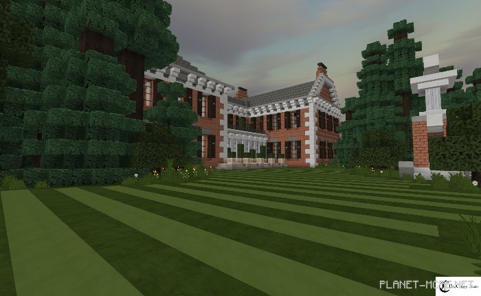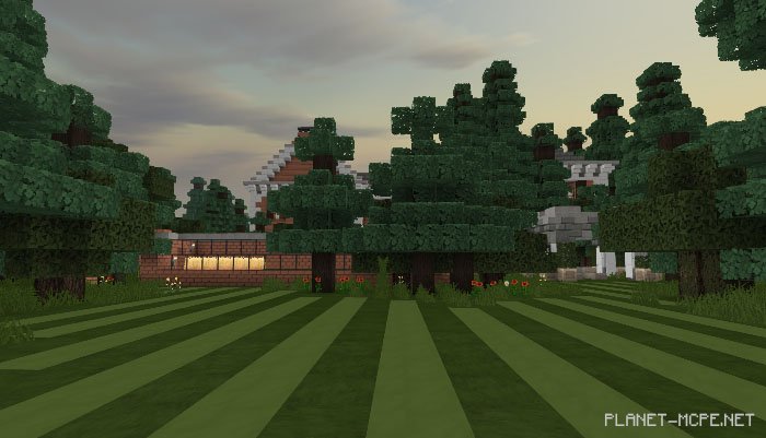 Discover the millionaire’s countryside – a secluded British mansion located in a vast forest on the map “Rural Retreat”, featuring all amenities for Minecraft PE. This estate, complete with its surrounding grounds, is fully finished and showcases a final exterior and interior design. The interior will receive a comprehensive update in the upcoming and final release of this map for Minecraft PE.