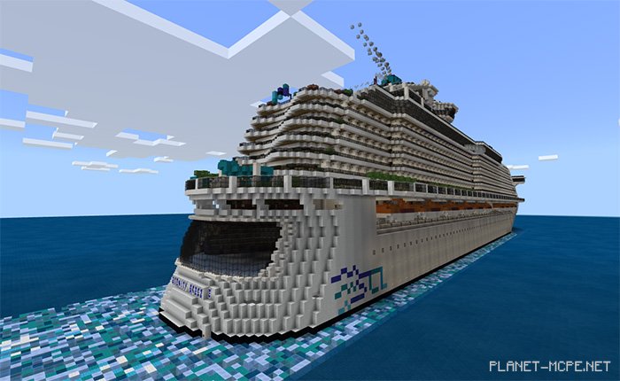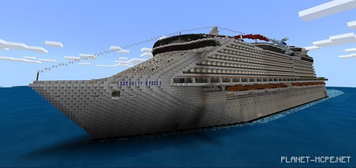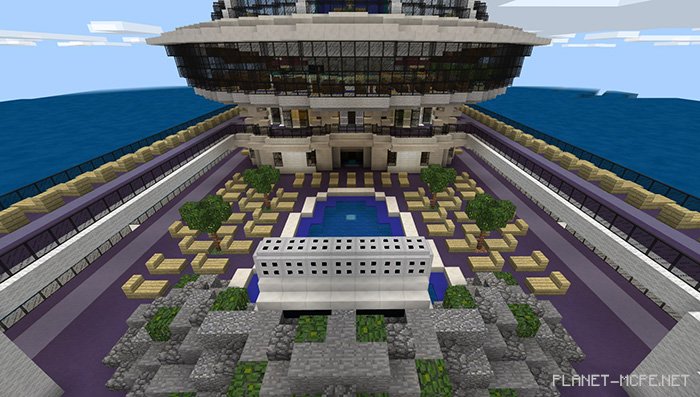 Serenity Breeze is a map that took over 4 months to create and build, resulting in an incredibly detailed cruise ship within Minecraft Bedrock. The creator believes it to be the finest vessel he has ever constructed. In the center of the ship, you will discover a park featuring numerous restaurants and shops. Additionally, there are sports facilities, water parks, two theaters, and even a cinema located at the top in Minecraft!