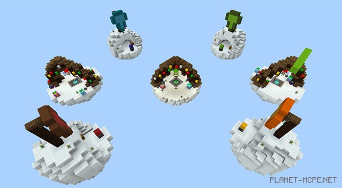 This is a fully-featured mini-game called “SG BedWars XMas (Christmas Bed Wars),” designed for multiple players to enjoy simultaneously. It features an amazing arena known as “Snowy Islands” and a completely automated shop. Players can gather items in Minecraft and trade them for other goods using a very user-friendly chest interface. This PvP mini-game accommodates numerous participants from Minecraft Bedrock. Utilize the stone shovel (which you will receive upon spawning) to destroy beds. Be sure to wear colored armor to easily identify which team each player belongs to.