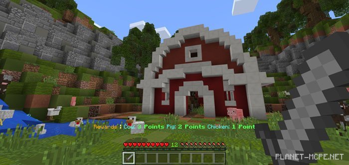 The map «SG Farm Fighters (Farm Wars)» is a strategic game where your objective is to eliminate animals on the farm. By achieving all milestones, you will unlock an additional challenge in Minecraft PE. On this map, you can engage in both multiplayer and single-player modes. To win the game, you need to score 100 points!