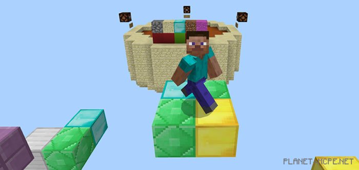 The map «SG Platform Jumpers (Platform Jumping)» is a parkour mini-game where you must leap between platforms in Minecraft PE, which move in various directions. Your objective is to keep jumping for as long as possible. The challenge increases over time due to the rising speed of the platforms. In the lobby, there are options available to customize the appearance of the platforms.