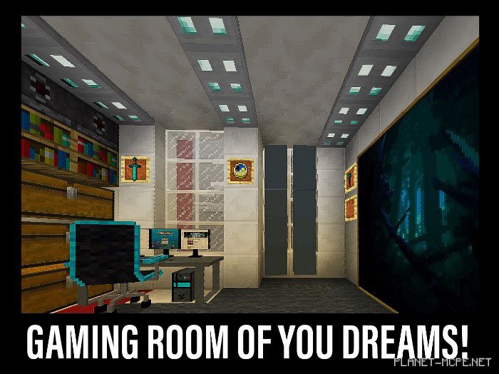 The home is filled with redstone mechanisms and command block devices, plus it includes a basement equipped with technologies that allow you to dominate the world of Minecraft PE (or maybe not).