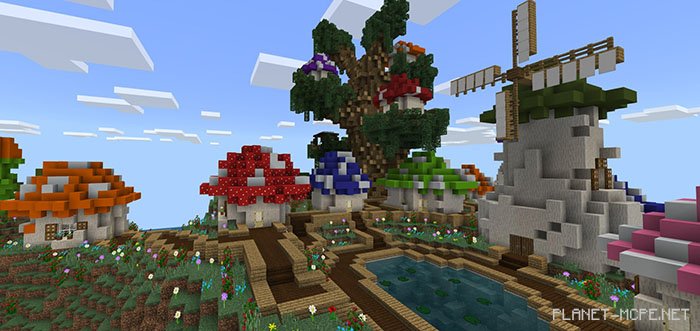 Map The Smurfs’ Village” features numerous mushroom-shaped houses that we all recognize and adore, along with iconic locations such as the Smurf Mill and the Smurf Hotel in Minecraft Bedrock. Each area boasts fantastic interior designs, including a massive tree located at the heart of the Smurf Village. You can climb this tree in Minecraft to discover even more Smurf homes and their gardens.
