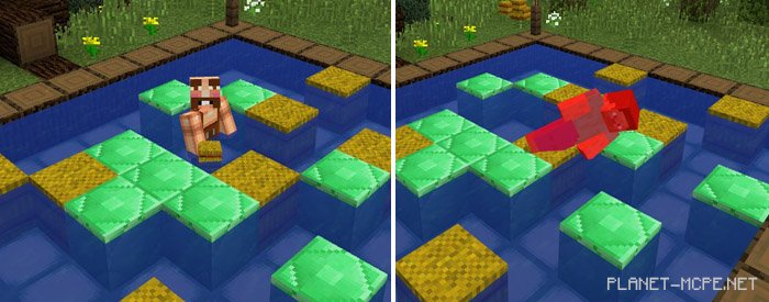 The game on the Minecraft PE map continues until players die upon hitting blocks. The winner will be the last person remaining! Before starting the next round, make sure to clear the pool of any extra blocks.