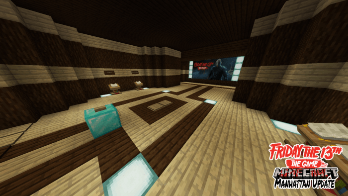 In Minecraft, a group of 5 players is formed: 4 campers and Jason Voorhees. The campers explore the entire map in search of an escape from the camp. Along their journey, they will encounter various items such as abandoned potions, apples, and more. Additionally, levers can be found in cabins that activate command blocks, which lock doors to prevent Jason from entering. By dawn, the campers must reach the exit located at a specific point on the map. There, they will find a button that, when pressed, ends the game.