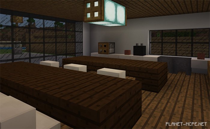 A contemporary residence on the map titled “Woodlux Modern House” derives its name in Minecraft from the fusion of the words “wood” and “luxury.” This is quite fitting, as it features wooden elements throughout. The house boasts two levels along with a courtyard that includes a swimming pool. It serves as an excellent option in Minecraft Bedrock for those looking to embark on a new adventure without the hassle of building their own base right away.