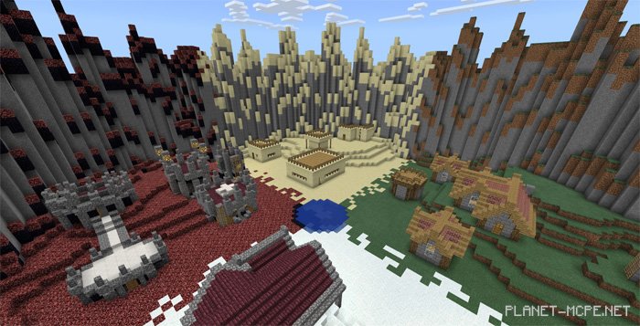 Massive Kit-PvP (Heavy PvP) is an impressive map featuring four unique arenas within the world of Minecraft PE, each with its own distinct landscapes. Players can choose from four different kits, each offering a mix of advantages and disadvantages. However, all kits have been carefully balanced to ensure that no player has an unfair edge in the battles of Minecraft PE. Additionally, there’s an admin shop that provides some exciting game enhancements and admin gear. More updates are on the horizon!