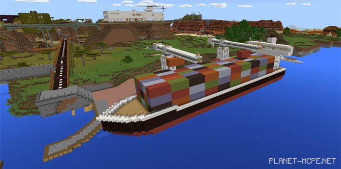 Along the coastline, you’ll discover a large ship loaded with containers.
