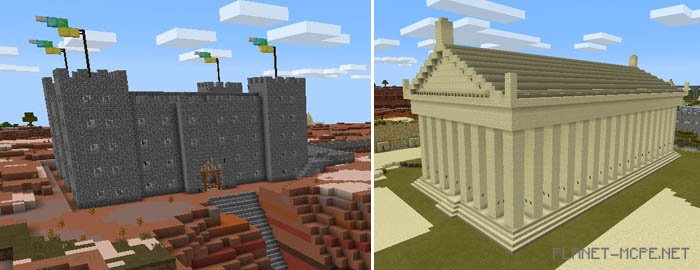 Here are the fortresses where you can take refuge during the night, ensuring your safety. The structure on the right resembles an ancient Greek temple.