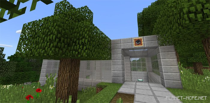 Upon spawning in this map for Minecraft PE, you’ll find several entrances to the stations above ground. The custom texture pack provides hints and modifies some game elements. In the screenshot below, you can see special hints framed for clarity. The doors meant for entry are marked with green checkmarks: