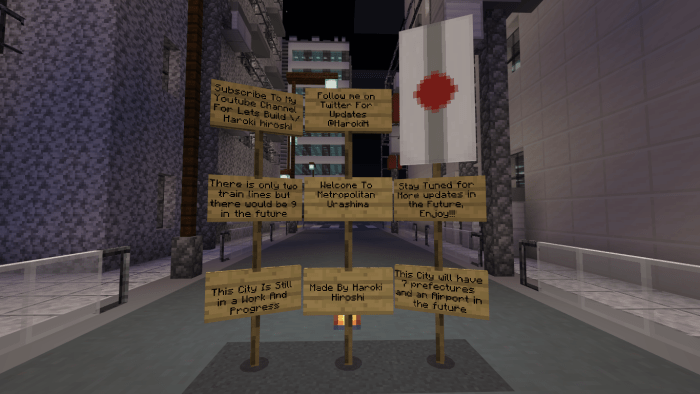 MapMetropolitan Urashima (Takeshita City)” is a futuristic Japanese city featuring advanced railway systems, contemporary architecture, and an international airport in Minecraft, along with over 8 unique buildings! Prefectures of Takeshita. A new tunnel in Takeshita. Avenue. Streets. Updated city station. Subway station (under development). Spawn location in the world of Minecraft.