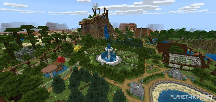 A railway encircles the zoo, providing stops at all attractions, including the Desert Temple, Jungle Temple, Witch’s Hut in the Swamp, Woodland Mansion, Nether Fortress, End Ship, Ghost Maze, and a full 360-degree view Aquarium!