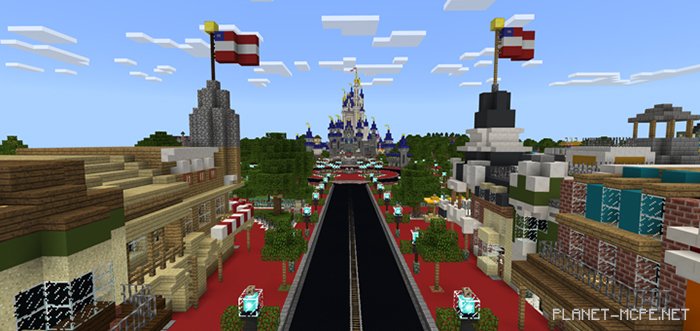 Greetings to everyone! The map “Minecraft Walt Disneyworld” has been crafted by FunShuffles17 over a span of two years. It showcases a Disney-themed world within the realms of Minecraft on Xbox. Currently, the kingdom is only 50% complete but will receive updates as new features are added in Minecraft Bedrock.