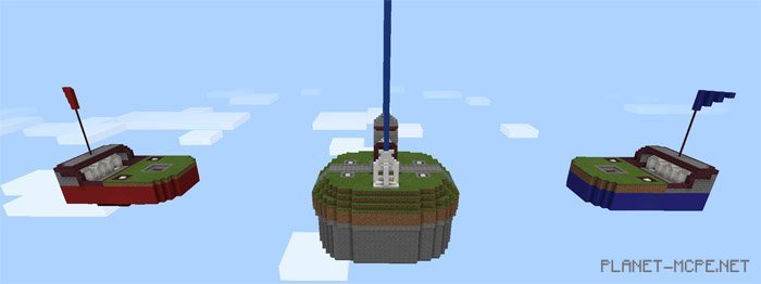 Upon spawning on this map for Minecraft Pocket Edition, you can read some rules and instructions displayed on signs. Solo play isn’t an option here, as the map is designed for multiple players divided into two equally matched teams. Once all players have spawned, you should quickly decide who will be on which team (all players must be split into red and blue).