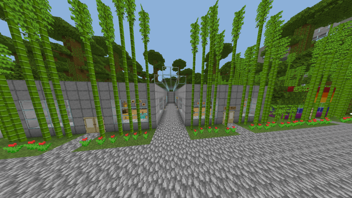 This map has been under development for several months, and the creators continue to enhance it with new buildings. The climate zone of this area is hard to define as it incorporates elements from various environments: bamboo, simple trees, and some local flora found in Minecraft. Minecraft.