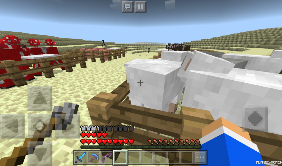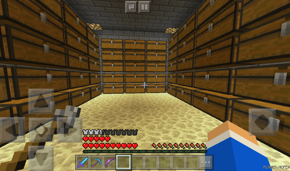 The map «Moon Super Flat (Luna)» for Minecraft Pocket Edition is themed around the Moon. This map features a mod called “Cosmos,” which transforms leather armor into a space suit. The ground is made of End Stone, so be prepared for numerous endermen to spawn in MCPE.