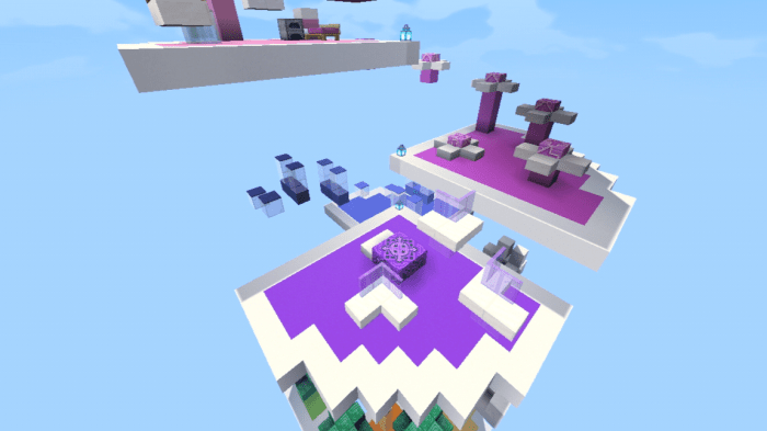 The map “Muser Parkour (Музер паркур)” features a multi-level parkour course in Minecraft Bedrock. You will gradually ascend to the top of a unique tower, tackling increasingly challenging levels. Between each layer, there are signs that connect different stages of the game.