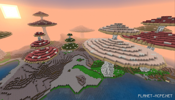 This map has been crafted within an infinite world set in a mushroom biome, enhanced to look even better. Additionally, you can incorporate various animal mods to enrich the gameplay experience. The primary aim of this map for Minecraft Bedrock is to entertain you while providing an improved visual aspect to the mushroom biome. We hope you enjoy it!