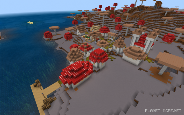 Mushroom Villages! This settlement on the mapMushroom Village” is designed to showcase what the “Village and Pillage” update should look like, after which villages are expected to emerge in all biomes of Minecraft. Currently, there are 8 professions available, along with 7 small houses and 1 large house.