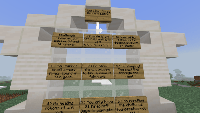 Challenge yourself in Minecraft with the map titled “Naked And Scared“! Your mission is to select one of the tasks provided and complete it over a span of 21 days.