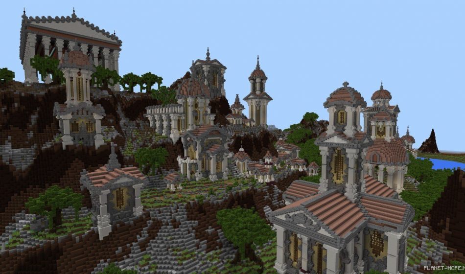 The map «Newrise (A New Beginning)» features an epic and intricately designed Greek city, surrounded by stunning custom landscapes in Minecraft Pocket Edition. Originally developed for PC, this map has now become one of the finest Greek maps available for MCPE.