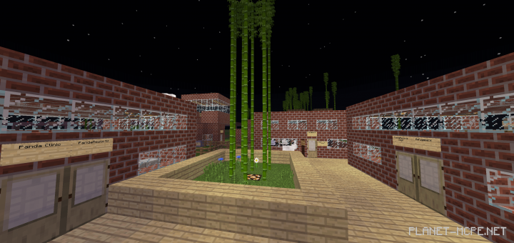 Welcome to the map “PandaResort (Panda Resort)”. PandaResort is a sanctuary for pandas in Minecraft Bedrock. It features a large area for pandas, a monorail, a clinic for sick pandas, an intensive care unit with an automated feeding system, and an administration building. The map includes numerous Redstone technologies.