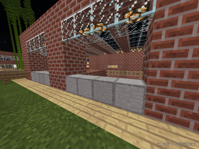 This is the clinic, which has a barrier that can be opened and closed. It also contains various potions for different purposes in Minecraft, such as healing pandas. New in version 1.1: the clinic now features two slots!