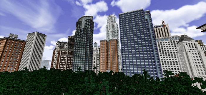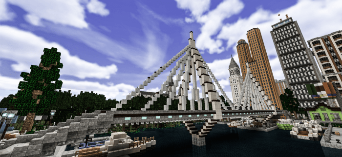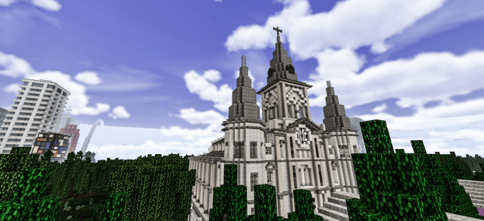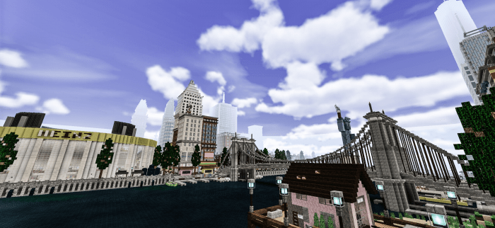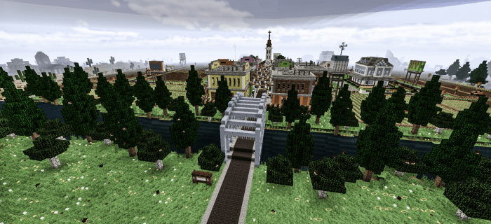 Welcome to the map “Patriotville (Патриотвилл)“! This expansive world of Minecraft features multiple cities. You’ll find everything here: skyscrapers, temples, schools, suburban areas, bridges, parks, ships, a Ferris wheel, farms, wind power plants, railways, monuments, train stations, and so much more!