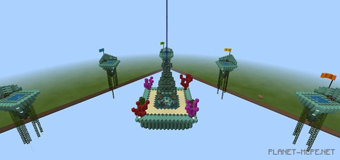 We are excited to introduce the first official map titled PC Aquatic Skywars (Water Sky Wars), developed by the team from Minecraft: Bedrock Edition known as Pixel Crew! Stay tuned for more exciting content, as this is just the beginning for them!