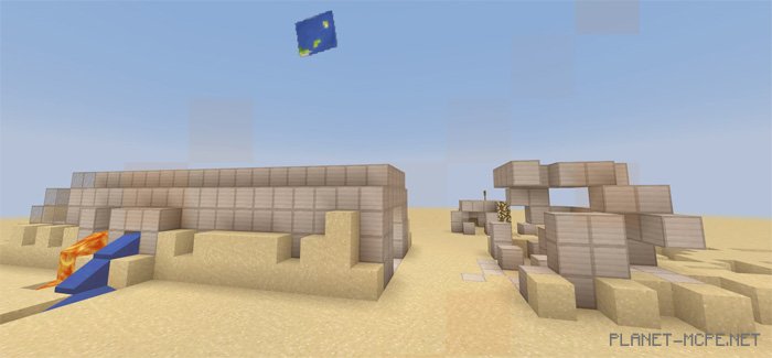 The map «Planetary Confinement PE (Trapped on the Planet)» offers an adventure infused with survival elements in Minecraft Pocket Edition, set on a mysterious sandy planet. After your ship crashes, you must desperately sift through the wreckage to survive on this world that has become your prison. Venture out alone or with friends to uncover the secrets of this enigmatic planet and enjoy a unique experience featuring cool mechanics and customizable textures. This is perfect for those ready to take on a new survival challenge in MCPE.