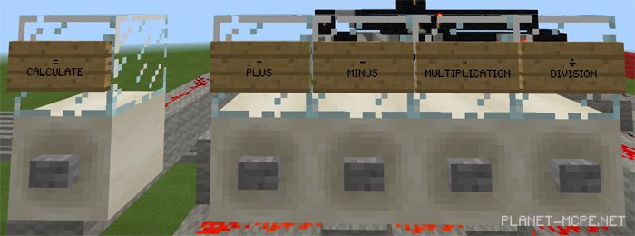 We invite you to utilize a highly advanced calculator, fully equipped with redstone in Minecraft Pocket Edition (along with command blocks, but without pistons). After installing the map “Raffi’s Calculator 2 (Calculator),” use it to tackle any mathematical challenges you may have. It supports functions such as addition, subtraction, multiplication, division, and more. Be sure to read the in-game user guide for Minecraft PE to learn about all its features.
