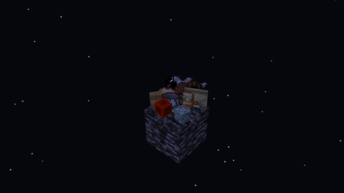 In the map titled “Randomised Skyblock“, you find yourself on a floating island in Minecraft, which consists of just one block of bedrock. After a certain period, you will receive an additional kit containing random items. You can choose how often these kits are distributed. As you gradually accumulate resources, you’ll be able to construct your own unique island in Minecraft!