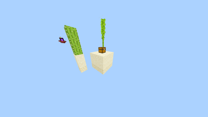 This is the deserted island. It has one cactus and some bamboo growing. Additionally, there’s a chest containing an Ender Eye, useful for crafting a portal, along with other helpful items.