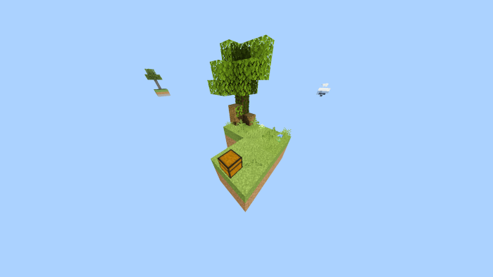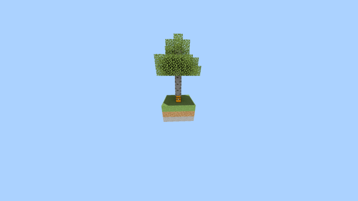 An island featuring a single tree and a chest that holds various saplings.